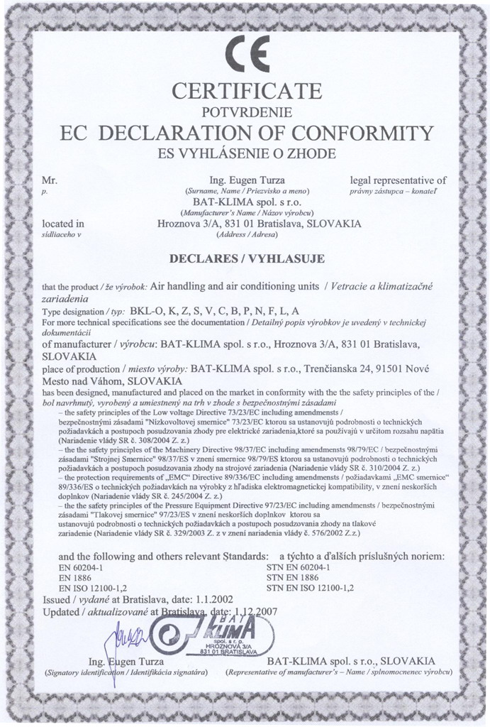 Certifikát dodávateľa plynových ohrievačov IZOMAT s.r.o. Červený Kostelec