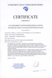 Prehlásenie o zhode Potvrdenie zhody s hygienickými požiadavkami